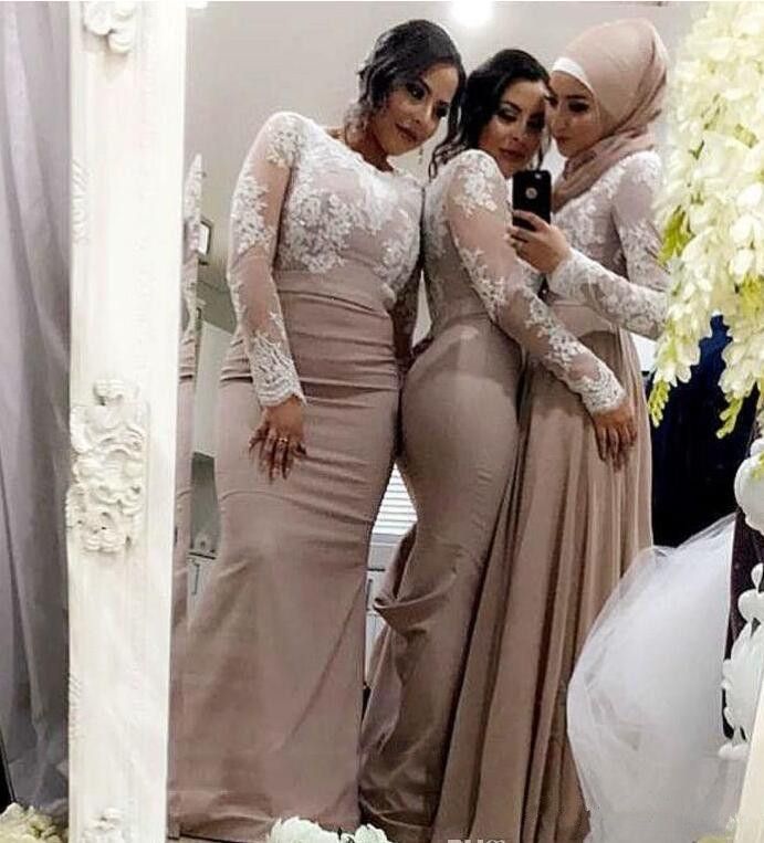 Grosshandel 2018 Champagne Mermaid Brautjungfer Kleider Mit Weissen